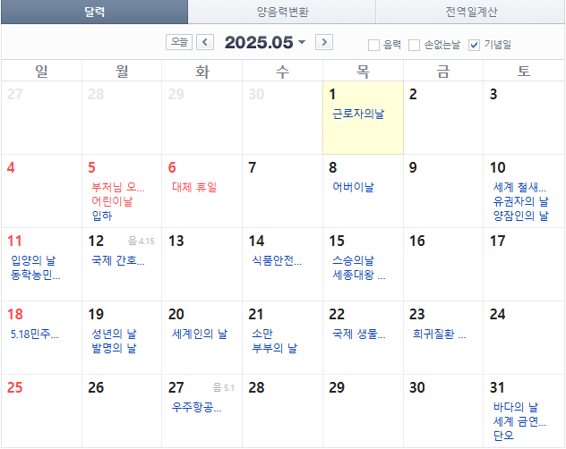 특히 올해(2025년)는 평일과 겹치는 기념일도 많아